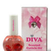 Diva’s Nagelriemolie in een flesje met bloemen is het ultieme verwenmoment voor hand en nagelriem. De verzorgende olie die de huid rondom de nagelplaat voedt, hydrateert en soepel maakt heeft een beschermend effect op de natuurlijke nagel. De nagelriemen zijn de eerste barrière die je nagelmatrix beschermd. De olie draagt bij tot een elastische zachte huid. Deze olie houdt de vochtbalans intact. Doordat deze nagelriemolie met een kwastje aangebracht kan worden maakt het het verwerken van de olie makkelijker. Het wordt ook sneller en efficiënter door de huid geabsorbeerd. Hierdoor kunt u extra lang van uw olie genieten.