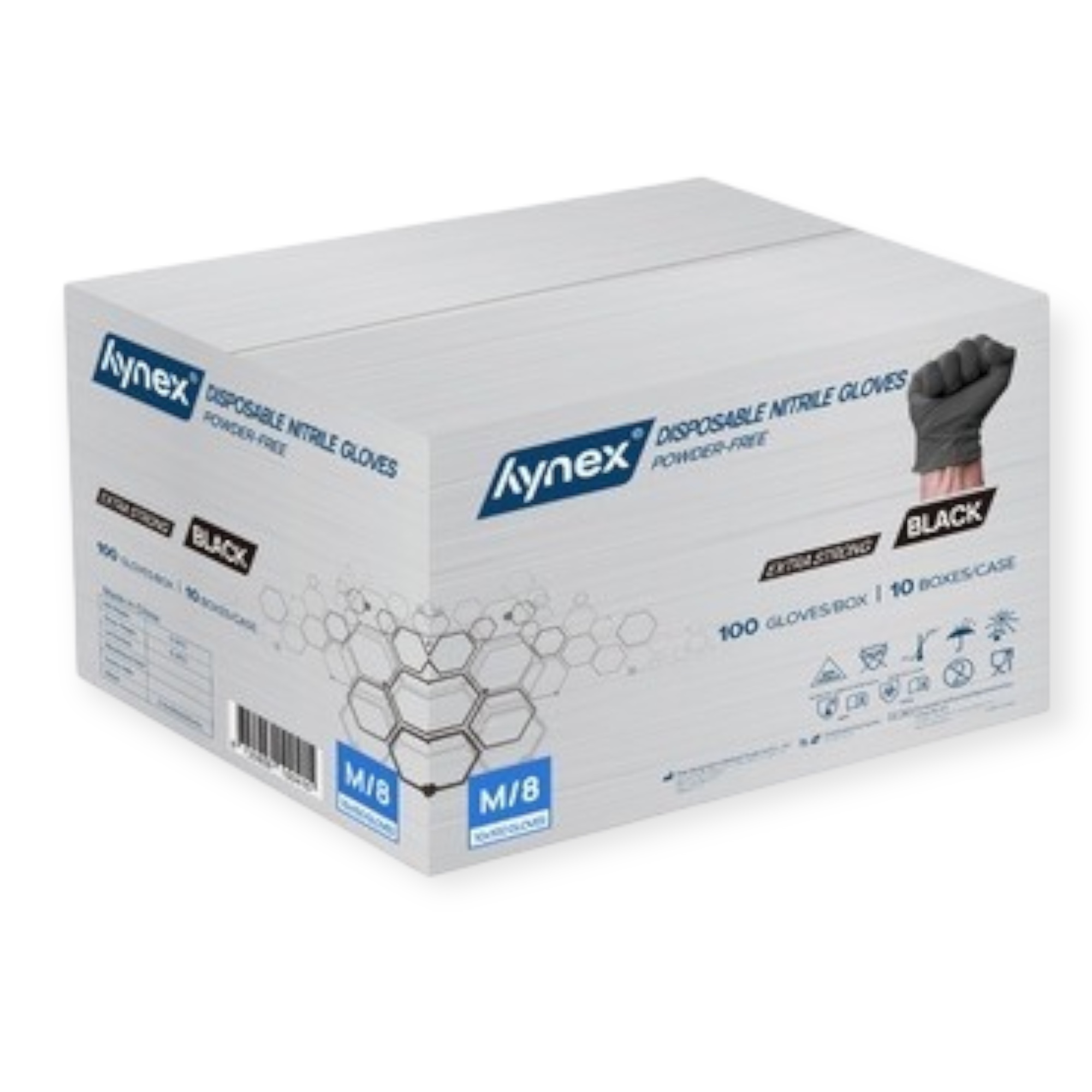 Omdoos (10×100 stuks) hynex Nitrile handschoenen maat m 5 gram zwart extra strong